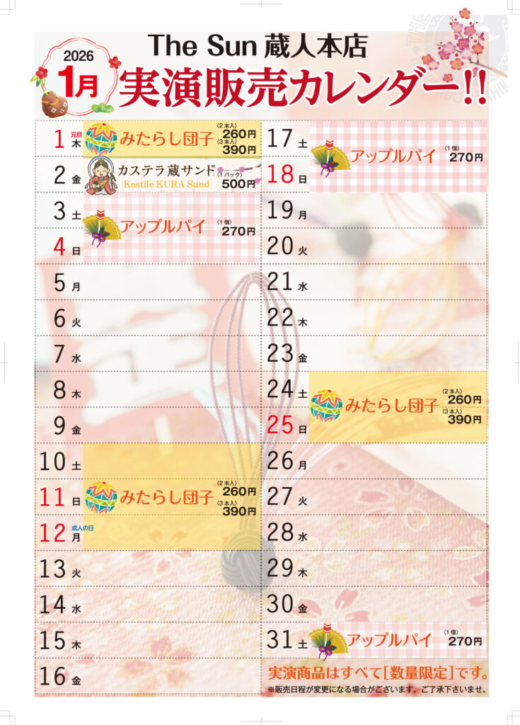 1月実演販売スケジュールのお知らせ
