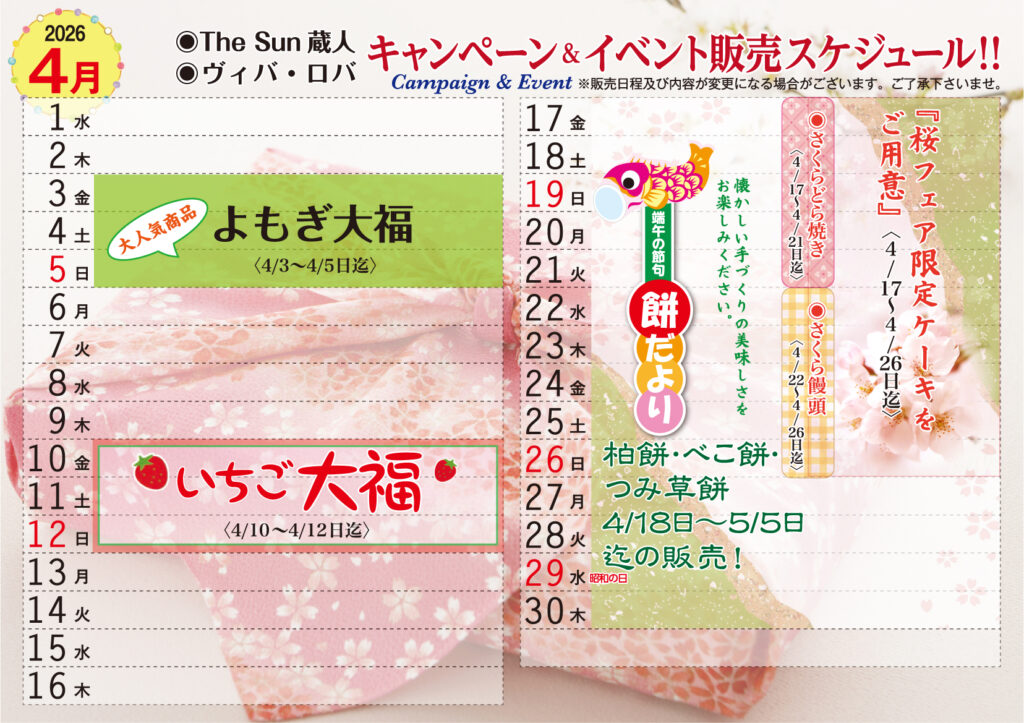 4月イベントスケジュールのお知らせ