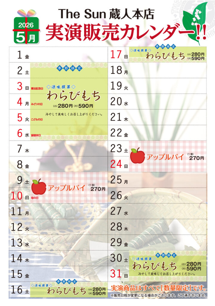 5月 実演販売スケジュールのお知らせ