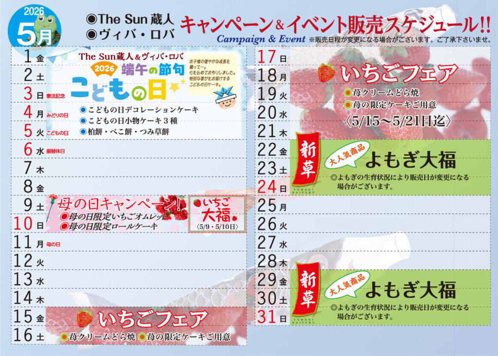 5月 イベントスケジュールのお知らせ